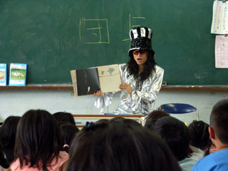 今日は、おもしろいことをやってくれて、どうもありがとうございました。本は、わたし大すきなので、大きくなって、だん長さんみたいに1000冊読みたいです。すごくきれいな服でした。あんなぼうし見たことなかったです。