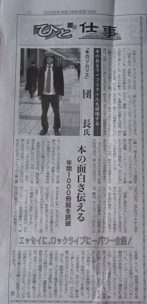 ロックバンドのボーカルからラジオDJ、講師、コラムニスト、俳優と、多種多様に活躍する団長。特に本の普及・紹介には情熱を注いでいるといい、自ら「本のソムリエ」と称する。NPO法人「読書普及協会」に属し、様ざまなイベントで講師を務めるほか、メルマガやブログ、雑誌の連載、トークショー、DJを務めるFM局の番組でも、自分が気に入った本を紹介をしている。